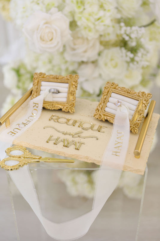 I am so in love with our ring tray! The craftsmanship is beautiful, and the design was so elegant and the perfect addition to our set up.