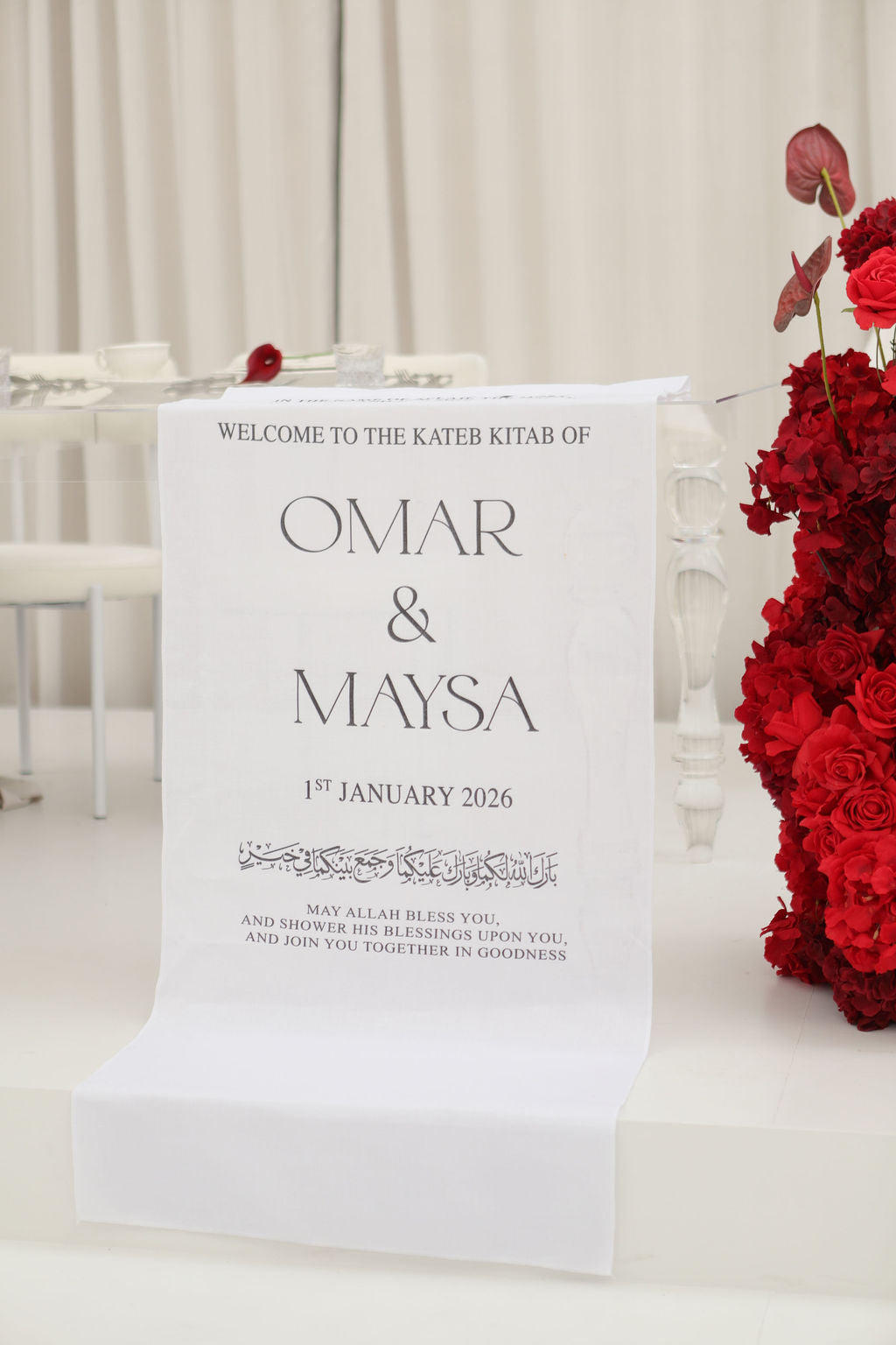 To order, simply choose the formatting you require line by line very specifically. "Welcome to the Wedding of xxx & xxx". to keep the format as is, please mention that you want the format as is and enter your names and date.