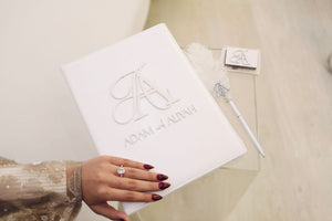 Our nikkah certificate book is perfect if you would like to include to do both fingerprint and signatures on your big day/ anniversary. Also makes the perfect display item, elegantly displaying your initials and date at the front of the booklet. No need for frames, you can sign as is and directly put this away as a keepsake for years to come