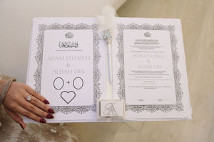 The WM Nikkah Contracts are aimed at customers who are looking to get married or know of people who are getting married and want to gift them, whether it is for the big day itself or for an anniversary. FOR AESTHETIC AND KEEPSAKE PURPOSES ONLY. NOT AN OFFICIAL DOCUMENT.